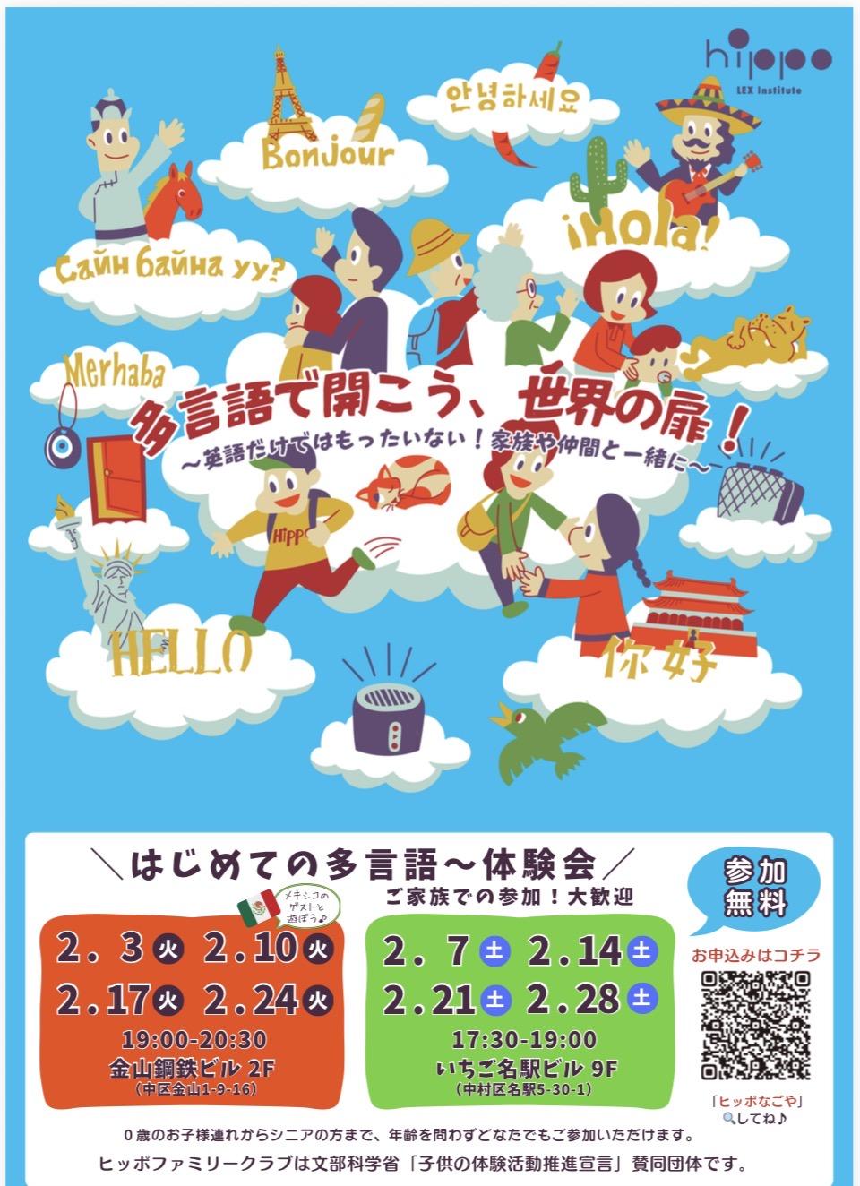国や人種の違いを超えて、どんなことばを話す人ともコミュニケーションできるようになれたら・・・。そんな思いから1981年、多言語を自然習得(母語の習得プロセス)するヒッポファミリークラブは誕生し、主に「多言語の自然習得活動」、「国際交流活動」、「研究・開発活動」の3つの活動を柱としています。
